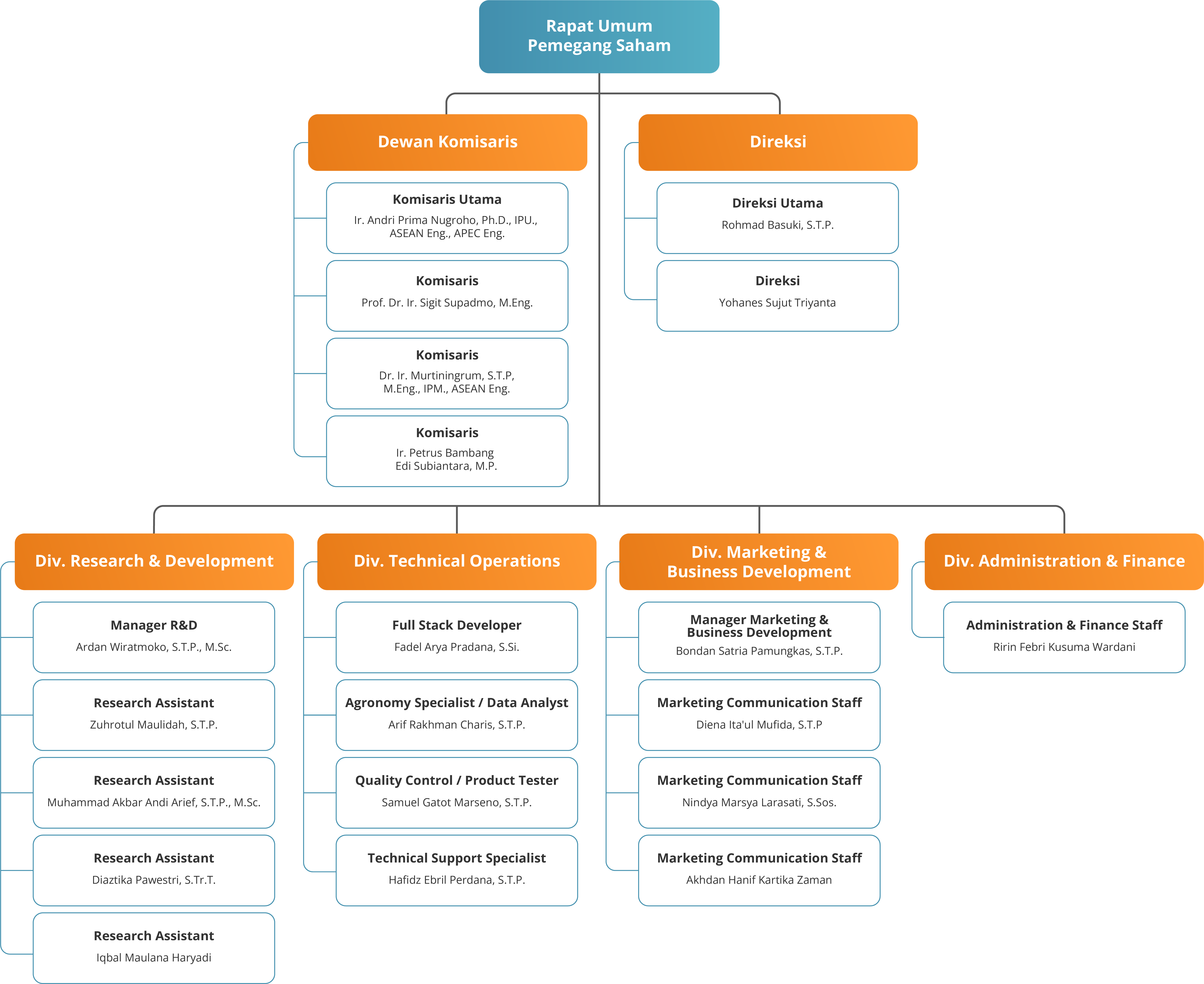 Dalam menjalankan bisnisnya, PT Cendekia Prima Inovasi digerakan oleh insan-insan kompeten dengan keahlian di bidangnya masing-masing yang dapat dilihat pada struktur dibawah.